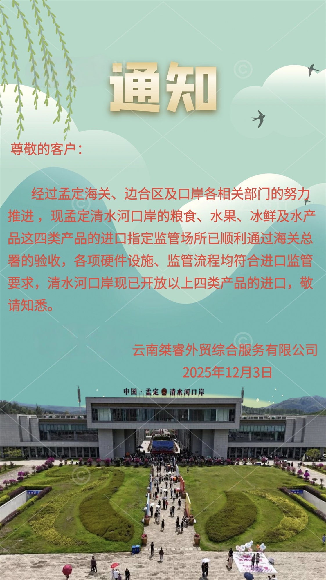 清水河口岸现已开放粮食、水果、冰鲜及水产品这四类产品的进口